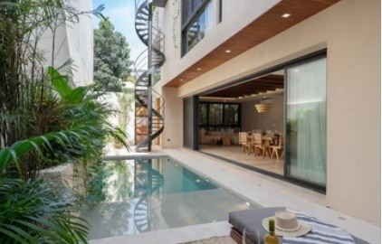 Escape to a stylish private villa in the serene Aldea Zama neighborhood of Tulum, just minutes