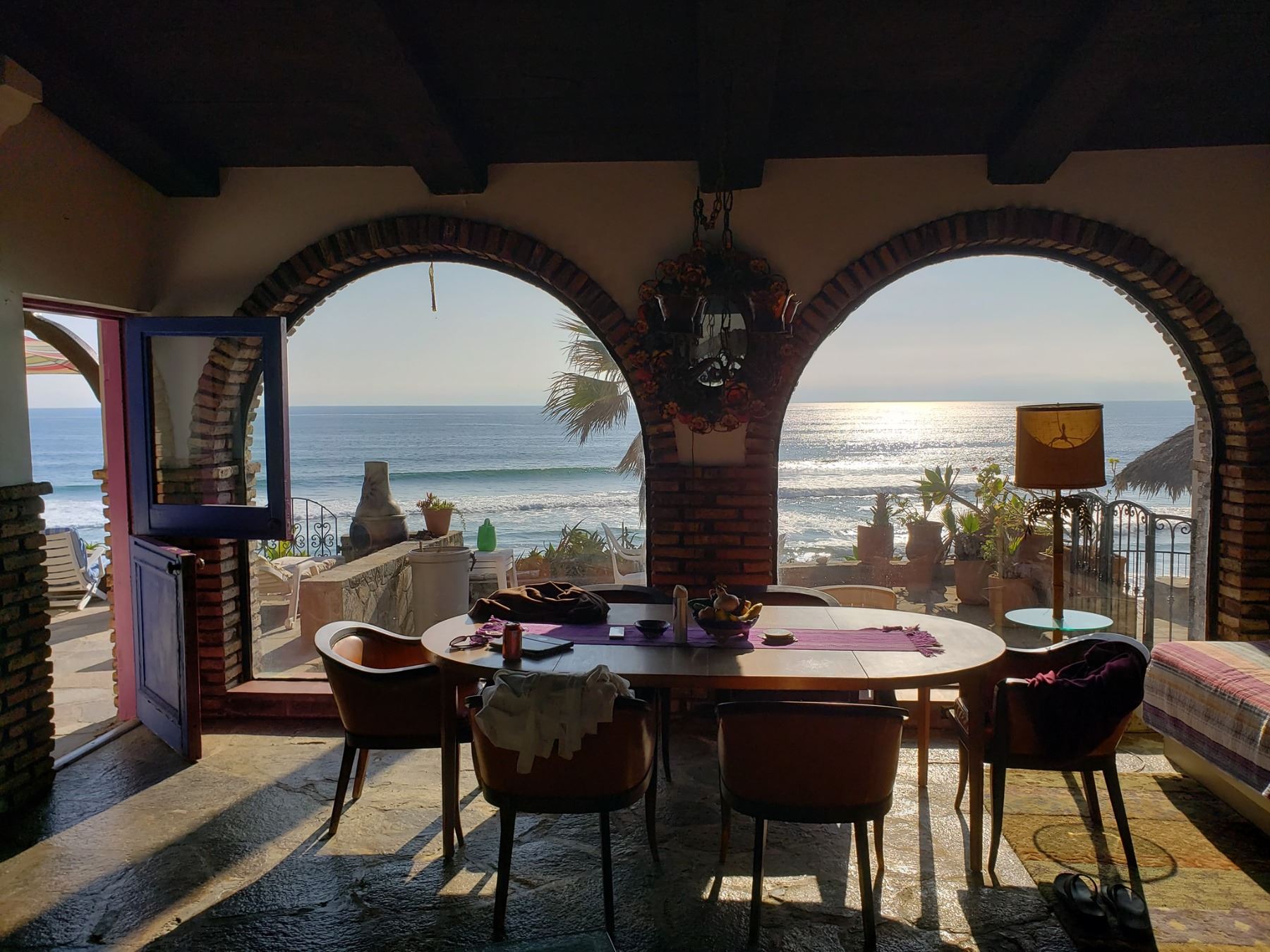 La Mision, Baja about half way between Rosarito and Ensenada just a few doors down from the "world famous" La Fonda restaurant. The house is ocean front with a fully enclosed yard for guests to bring their dogs. Let me tell you this house is old, small and very authentic Mexico. As beautiful as the granite counter condos with pools and gyms are, this is not that. What it is, is a small slice of classic Mexico paradise where someone who knows and visits Mexico will appreciate. The main house is a 2 bedroom, 2 bath with additional sleeping on pull out couches. There is also a studio casita on the property with a bathroom and kitchenette.