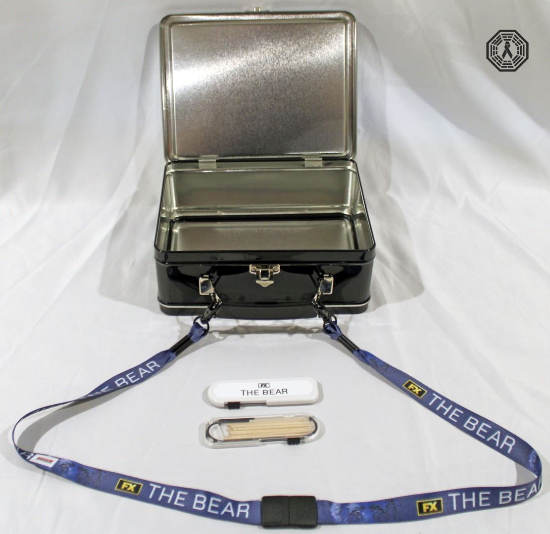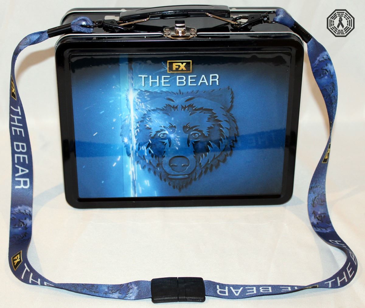 The Bear SDCC 2024 Exclusive lunch box with an FX The Bear lanyard. From the FX offsite. Includes 2 sets of The Bear toothpicks inside.