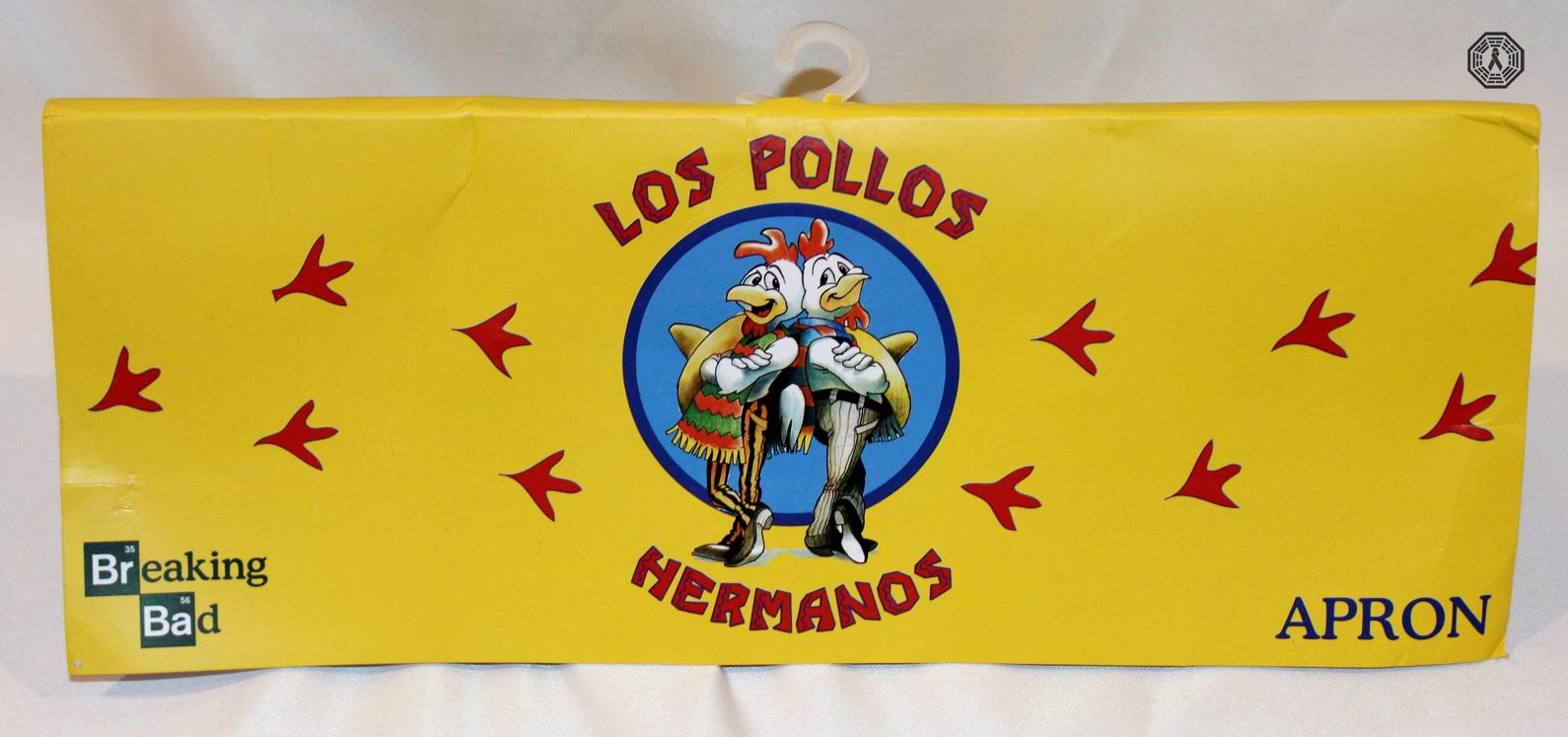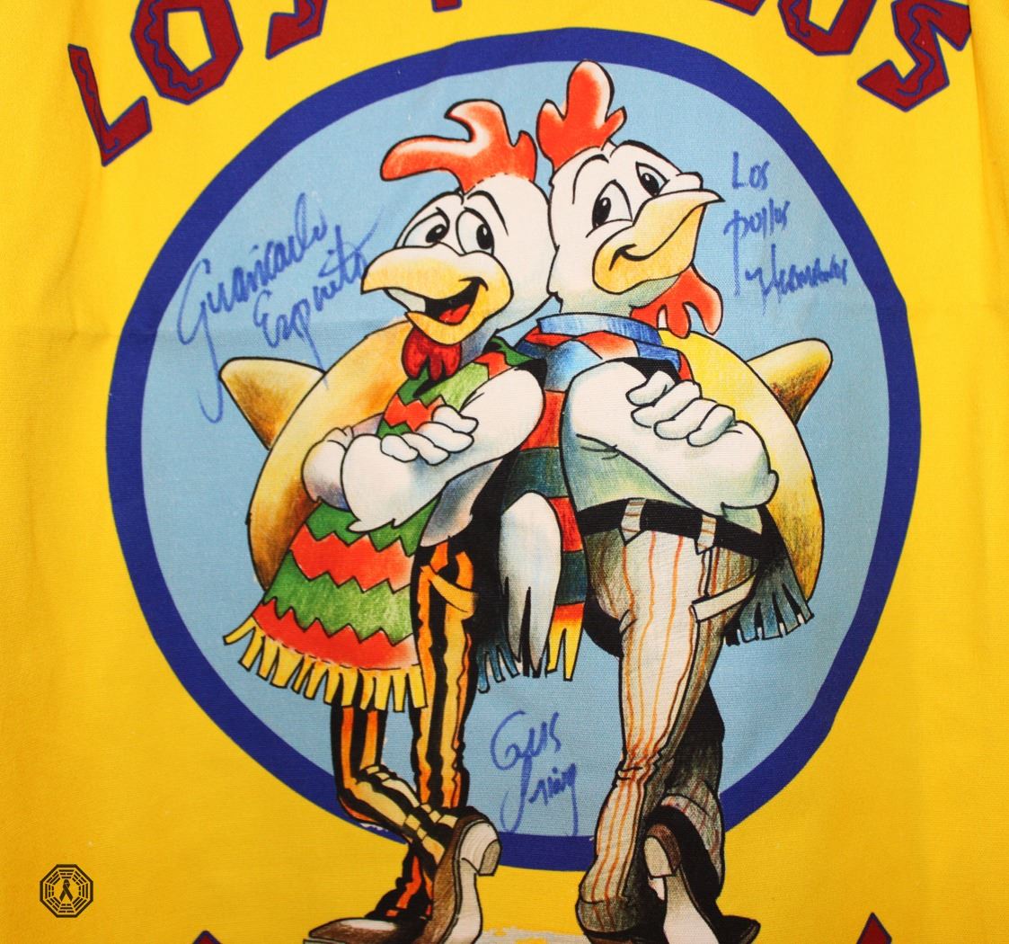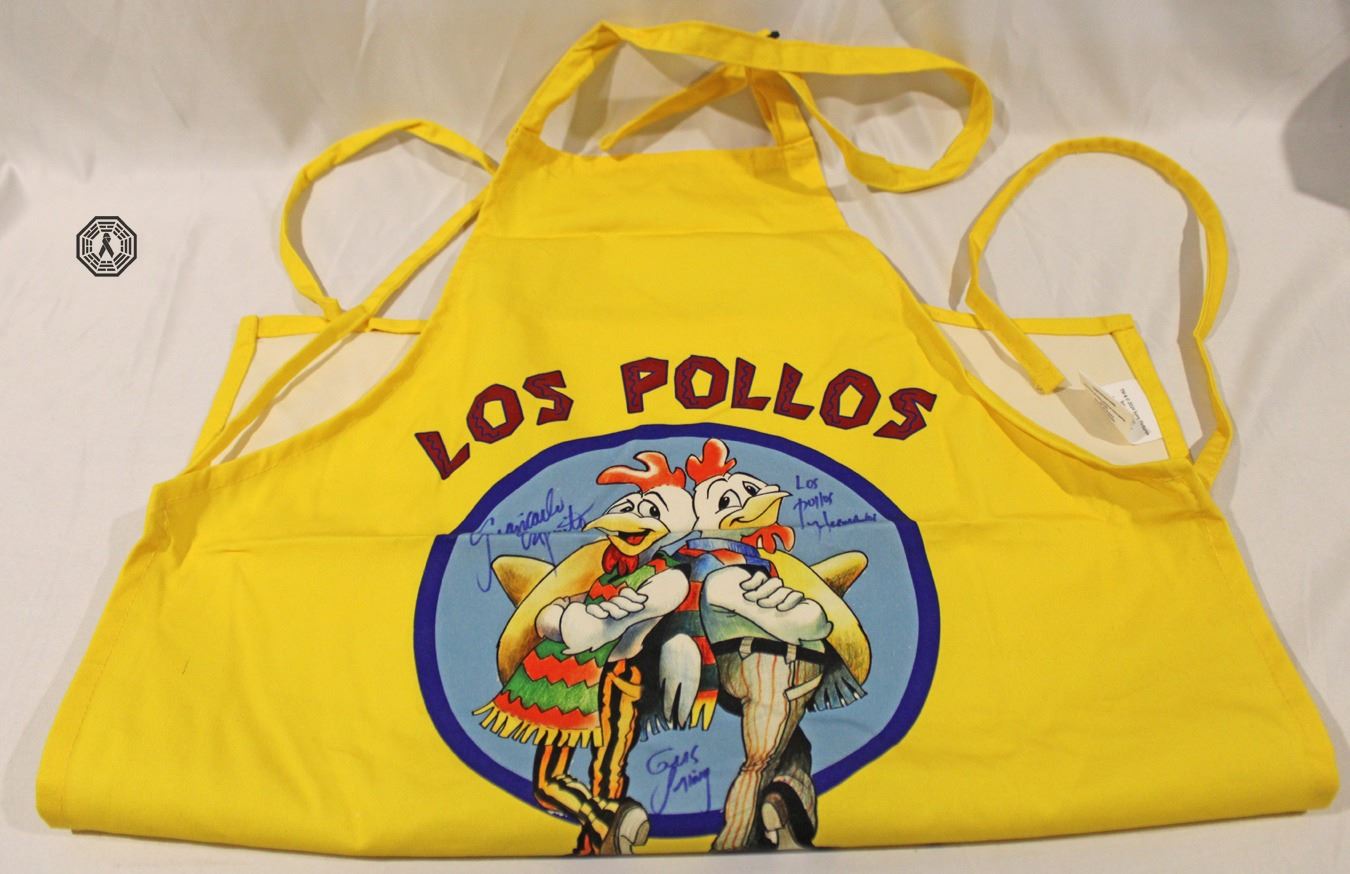 Breaking Bad Los Pollos Hermanos apron. Signed by Giancarlo Esposito (who added "Los Pollos Hermanos" and "Gus Fring")!
