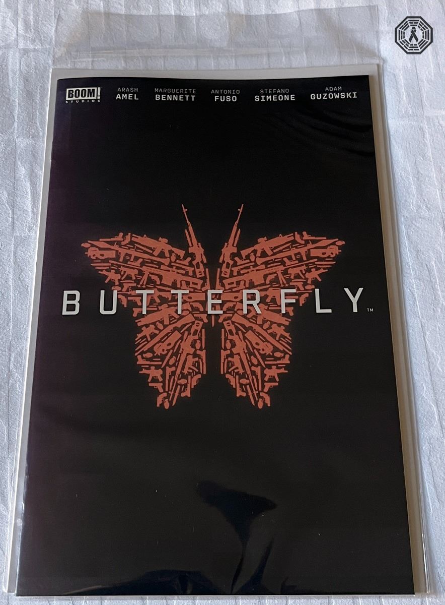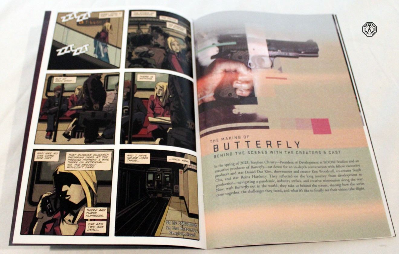 Includes bonus Butterfly #1 Ashcan comic. SDCC 2025 limited edition (only 250 were sold). Boom! Studios. Boom! Direct Reserve. Promotional tie-in with the TV series. Inside there is a "The Making of Butterfly: Behind the Scenes with the Creators & Cast" section. Rare collectible! Donated by Jo G.