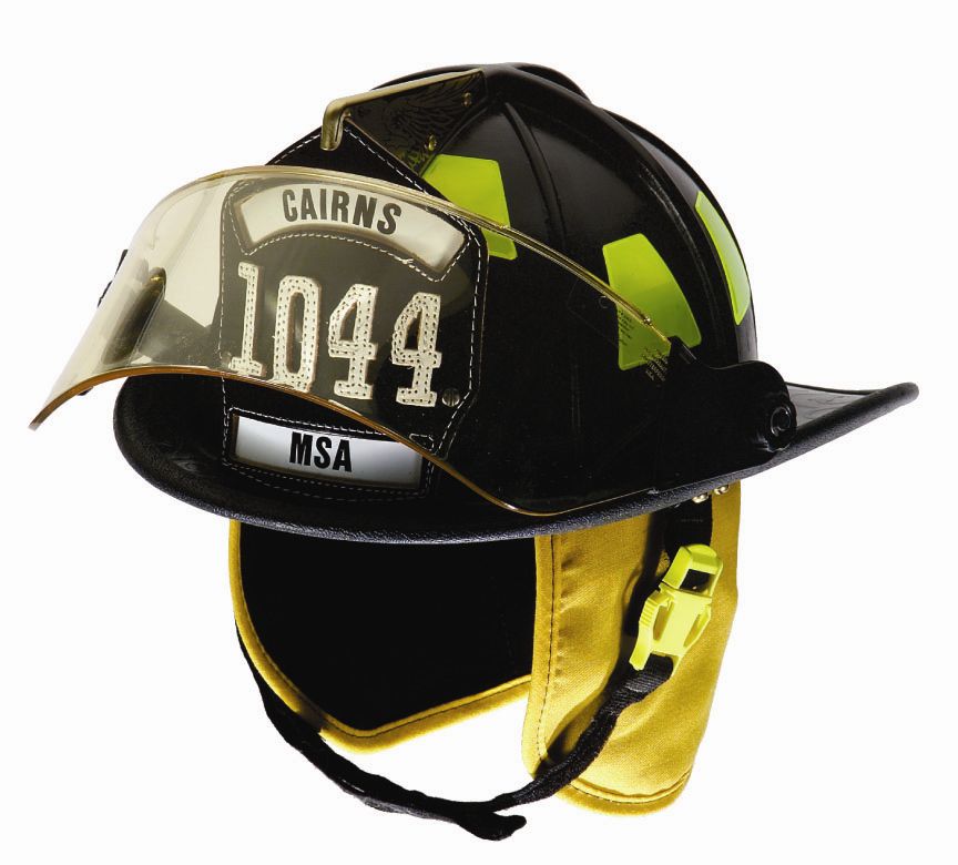 Need a new lid? Why not get in on this sweet deal!! It's a Cairns Traditional 1044 in Black (WITHOUT leather front). Comes equipped with a 4" Tuffshield w/wing, Standard Flannel Liner, Extended Nomex Earflap, Brass Beaver Holder, Nomex Chinstrap with Quick Release and Slide and finished off with Reflexite Lime-Yellow Trim Colour. The MSRP is $232.00. Provided by A.J. Stone Company Ltd.