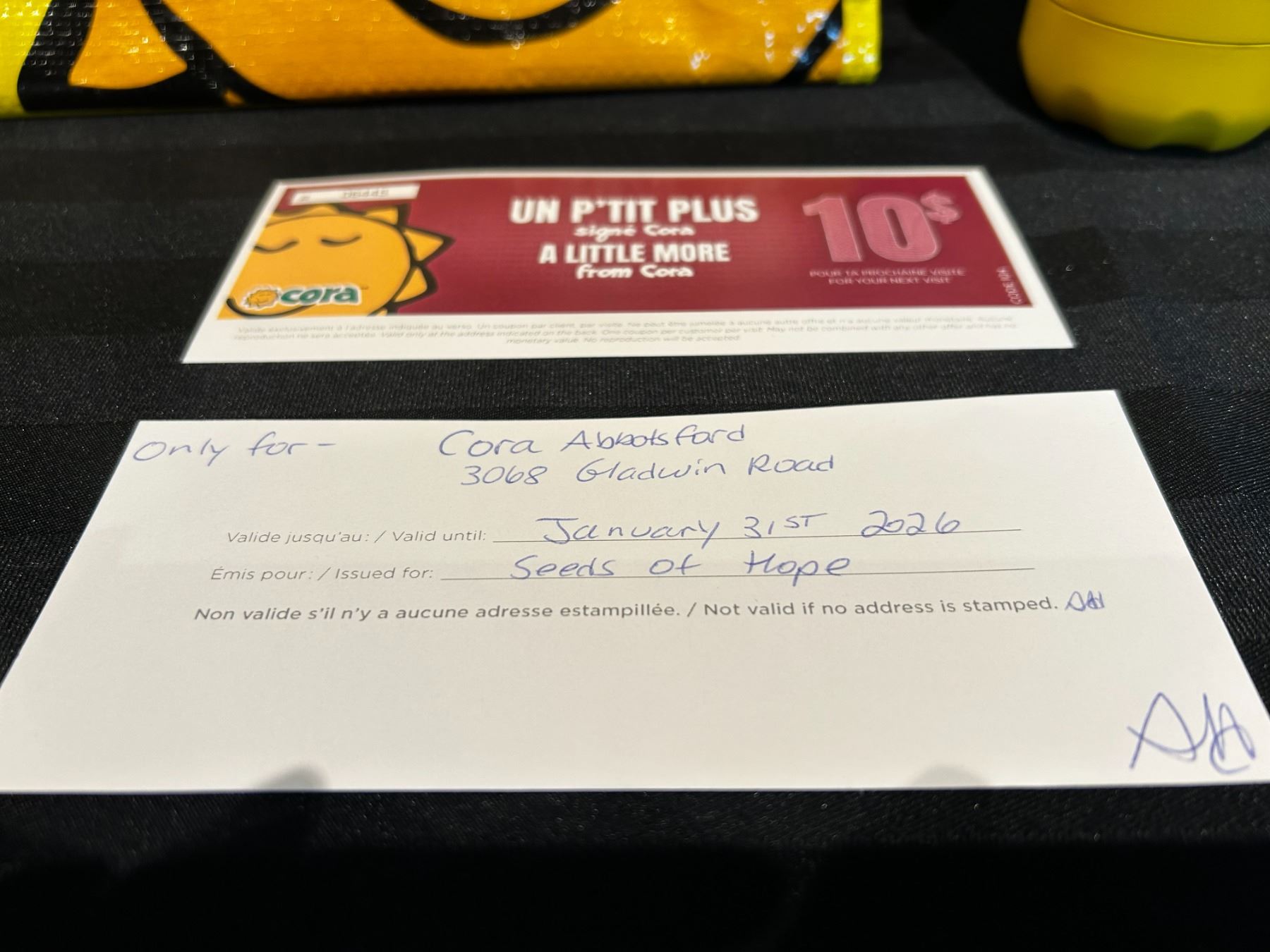 Pick up/shipping of items will begin Wednesday, November 5, 2025. Call Seeds of Hope at 604-392-0884.