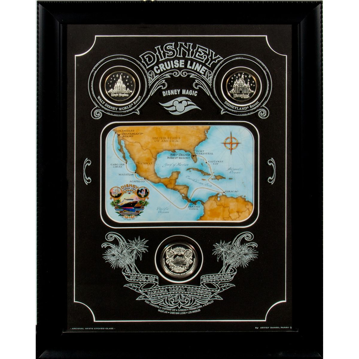 Set of 3. Framed with archival white etched glass, 14 in. x 18 in. In fine condition.