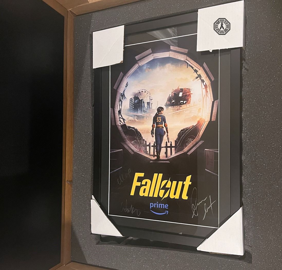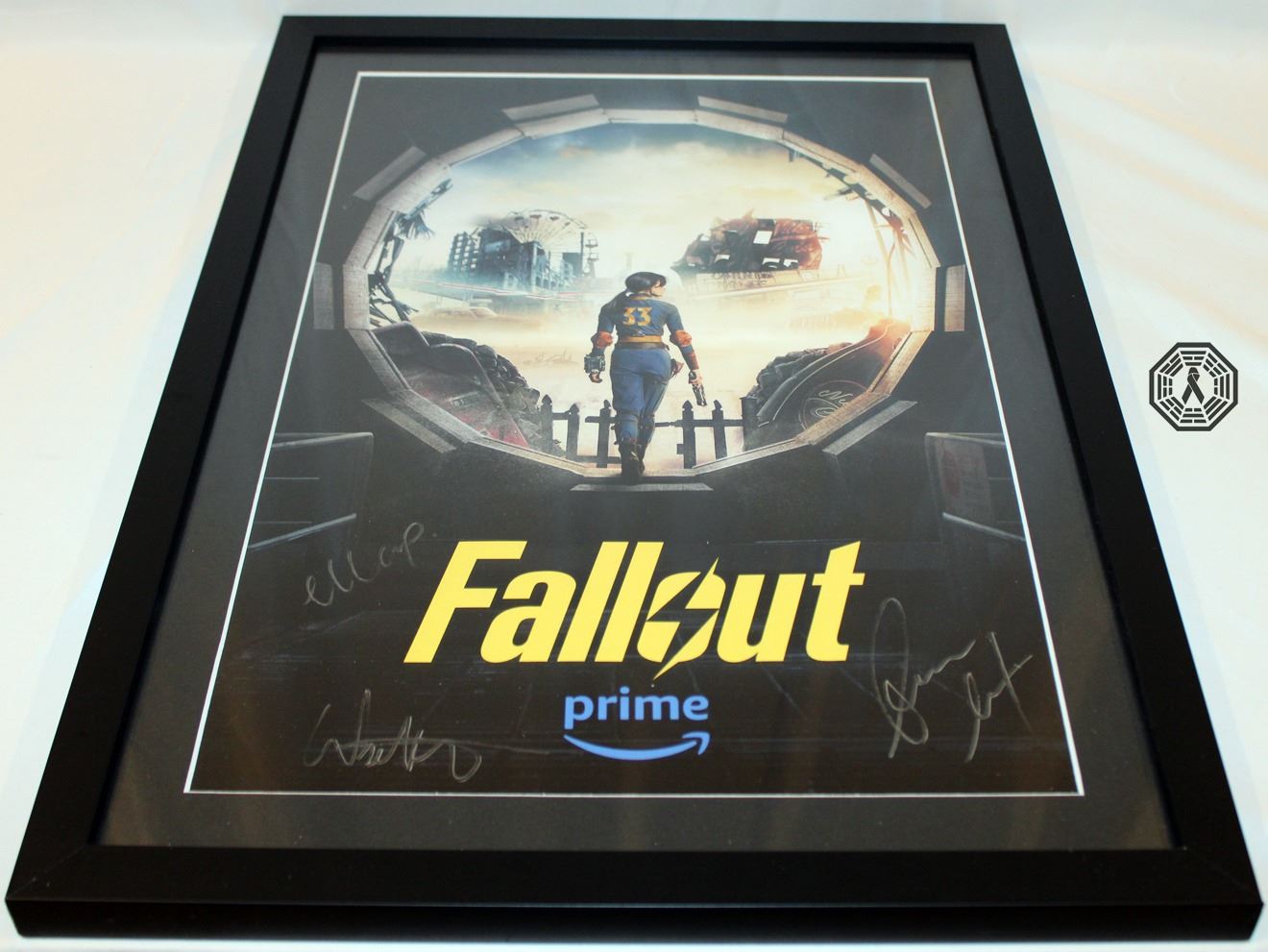 Fallout Season 1 framed art print. Signed by Ella Purnell (Lucy), Walton Goggins (The Ghoul) and Aaron Moten (Maximus)!