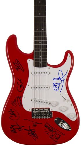 electric guitar with autographs of 9 rock legends:
