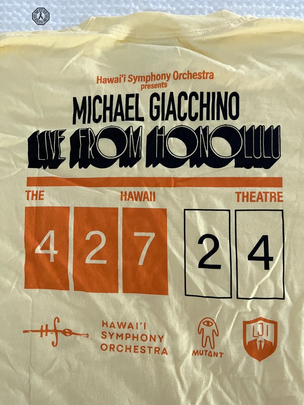 * Hawai'i Symphony Orchestra presents Michael Giacchino Live from Honolulu T-shirt. Size XL. Comfort Colors Heavyweight Garment Dye. Ring Spun. 100% cotton. Wrinkled but new!