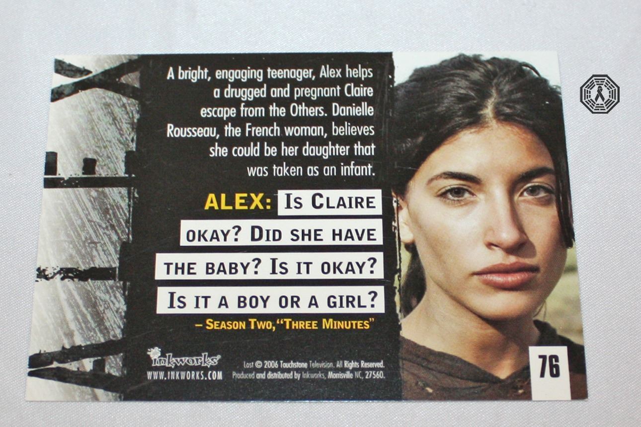 - Alex Rousseau Season 2 trading card signed by Tania Raymonde. Inkworks. In good condition. Donated by Jo G.
