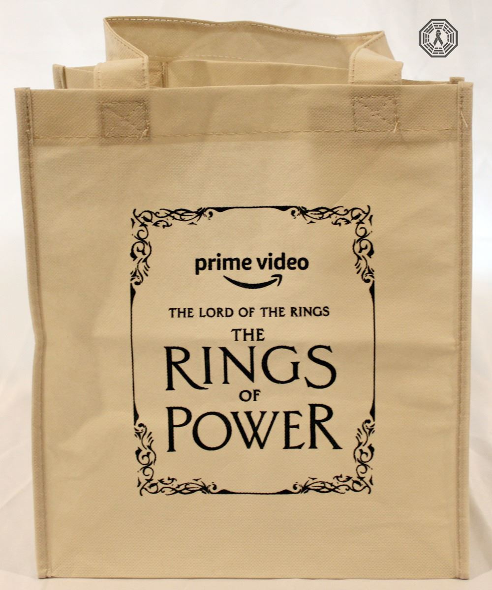 The Lord of the Rings: The Rings of Power Prime Video canvas bag. Rare, received by select Amazon Fresh customers as part of the show promotion. 10.5 x 11.75 inches. New, in good condition. Donated by Anonymous.
