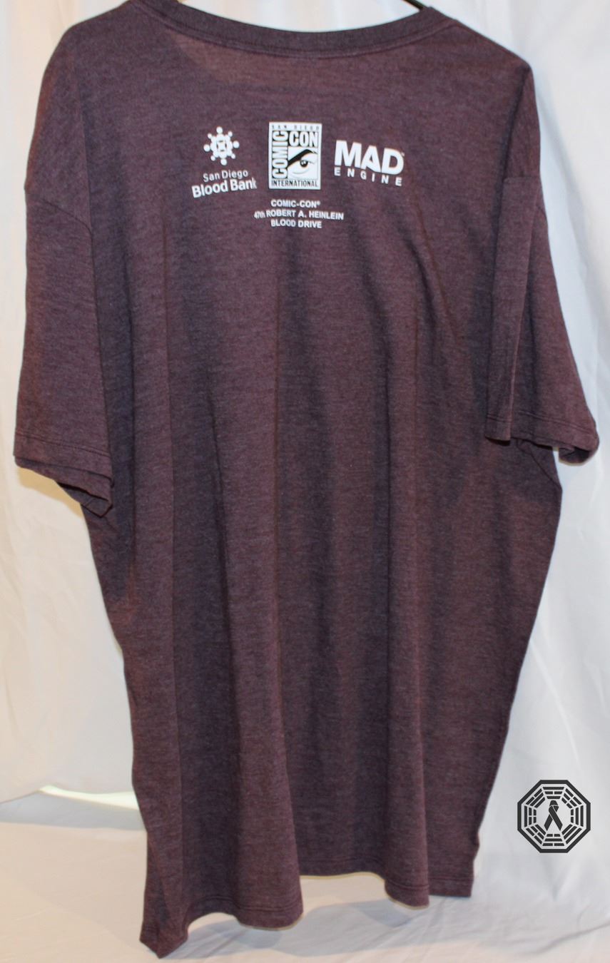 "San Diego Blood Bank, SDCC, Mad Engine, Comic-Con 47th Robert A. Heinlein Blood Drive" on back.