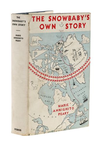 Frederick A. Stokes Company, New York, 1934. First Edition. With ten reproductions from photographs and a map. Octavo (7 5/8 X 5 ¼ in., 195 X 134 mm). [305] pages. Pale blue cloth lettered in white. Very Good. Book exhibits slight handling and faint damp ring on front board. Hinges are sound. Price clipped dust jacket is creased and smudged with tape repair at the upper front spine fold verso. Signed by Marie Ahnighito Peary on the front free endpaper, “Marie Ahnighito Peary, ‘The Snowbaby.’”