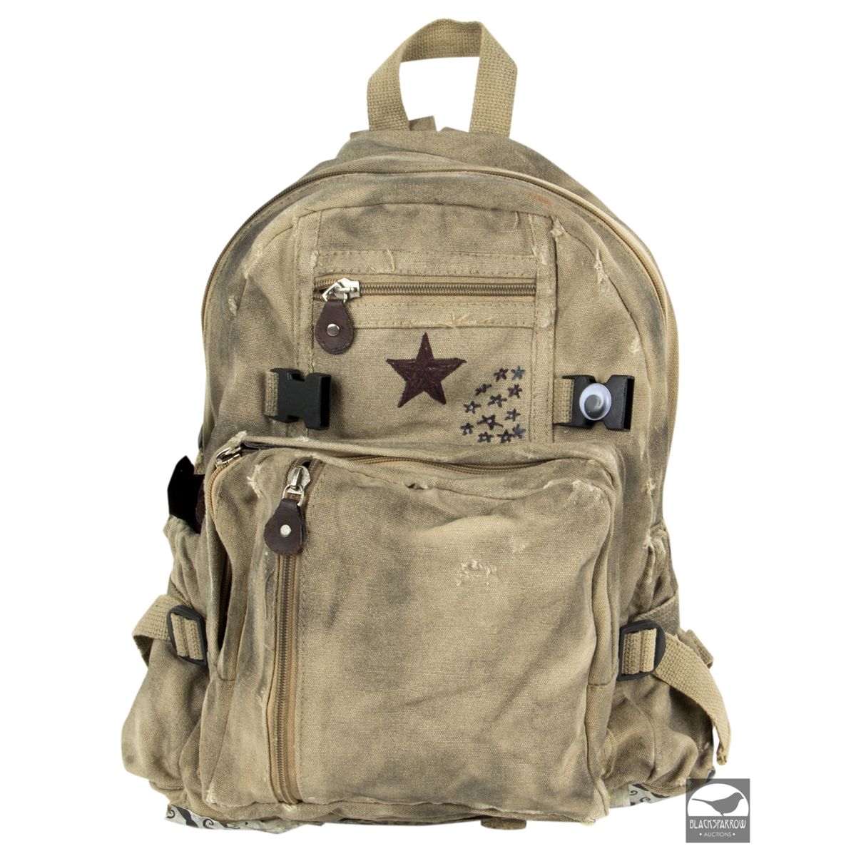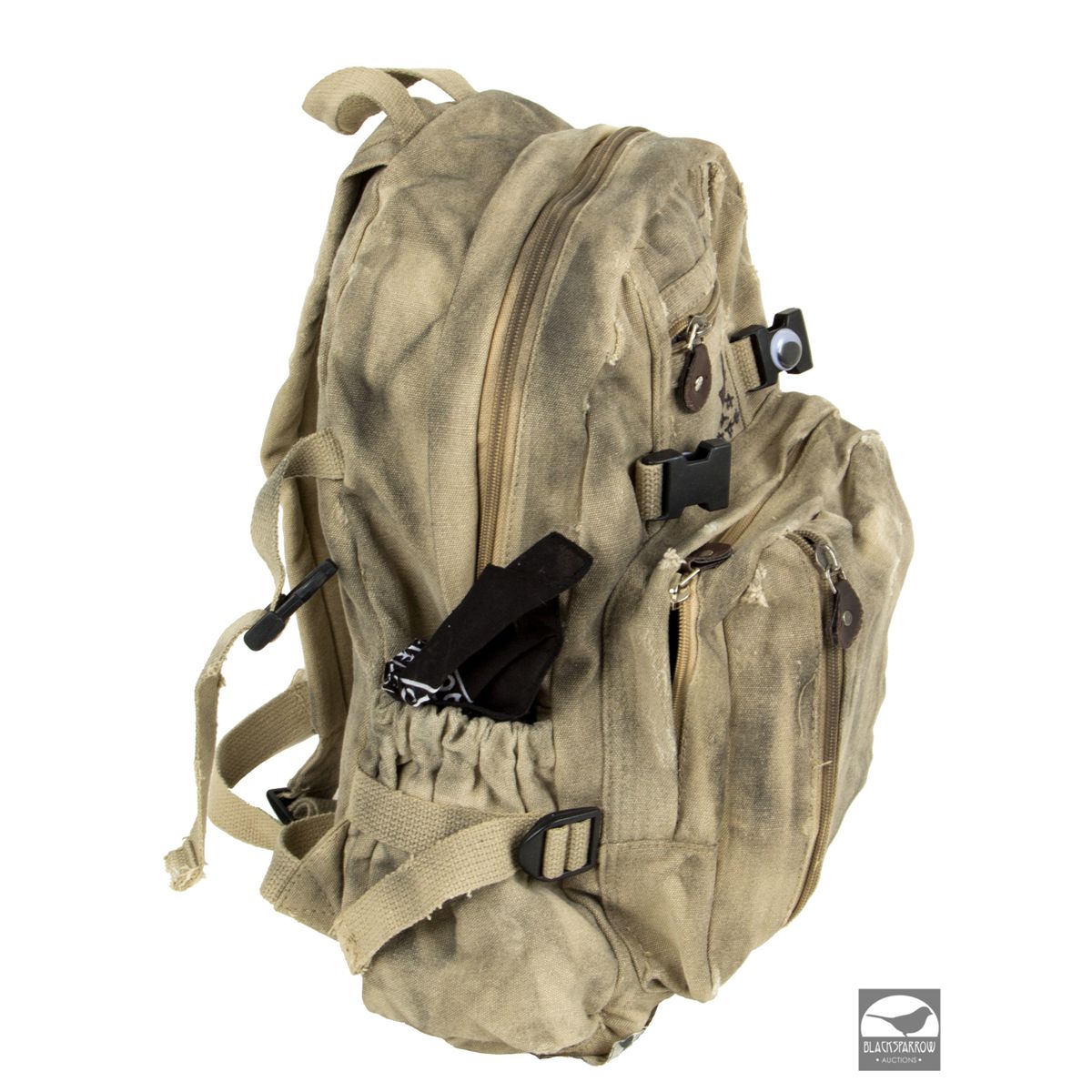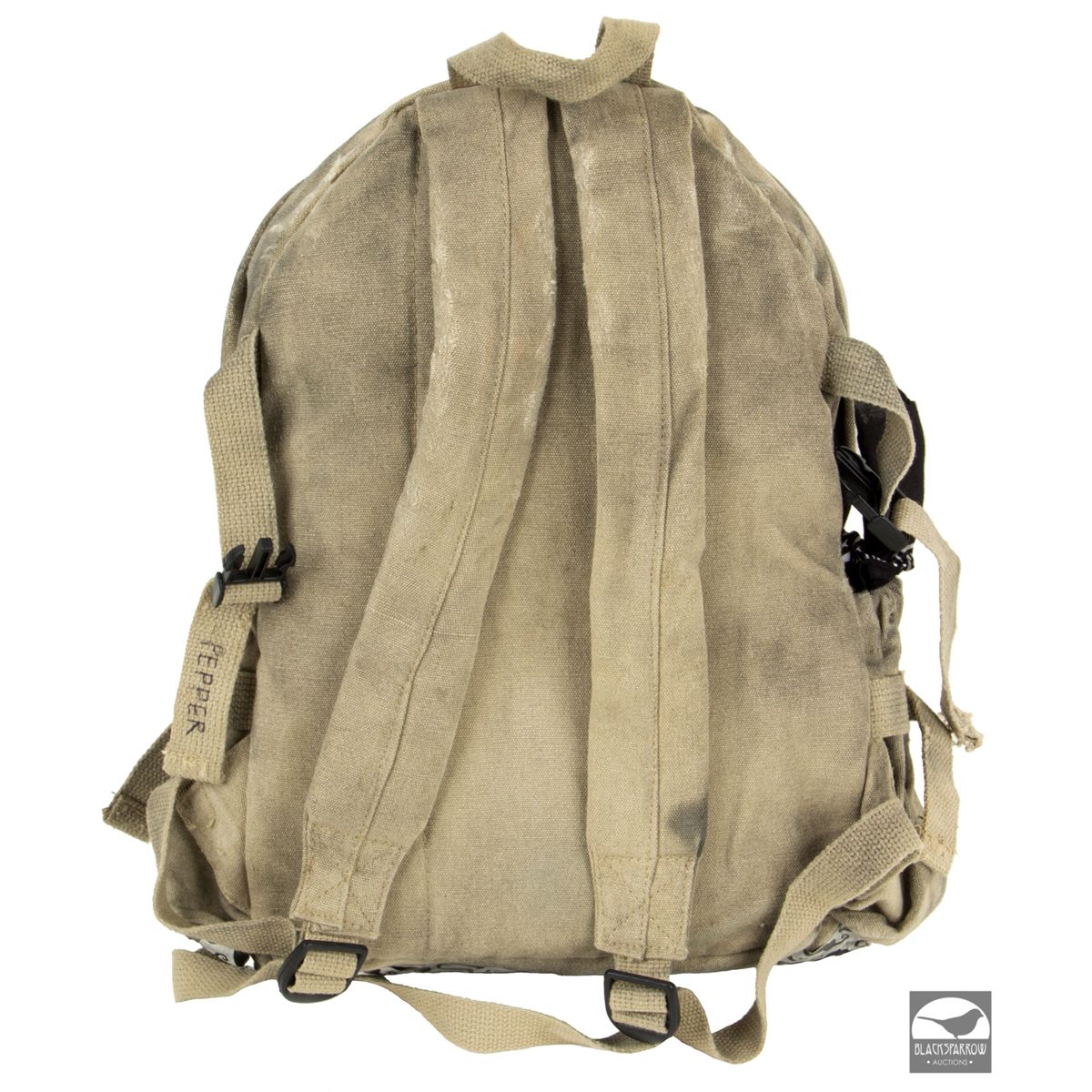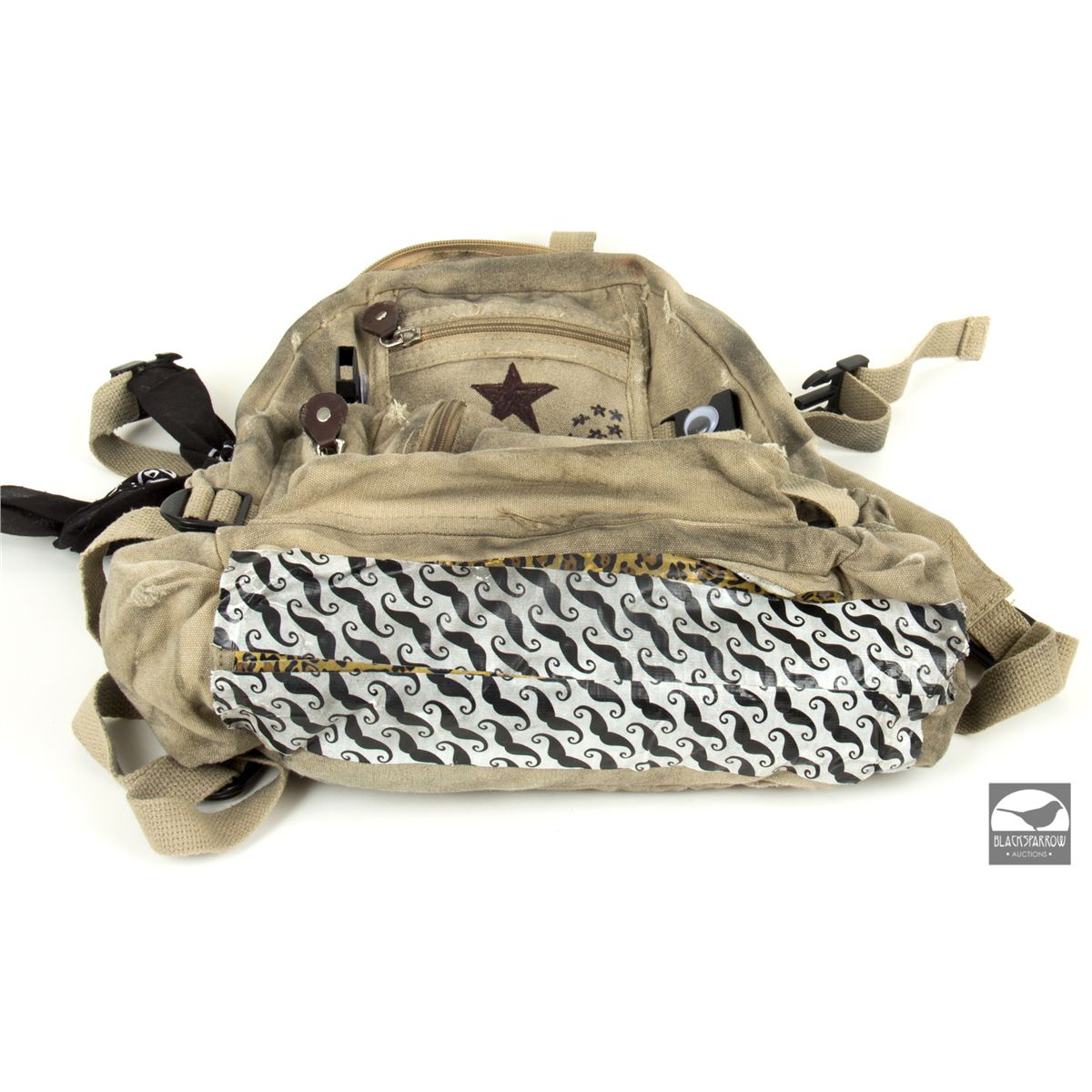Hero backpack used by Pepper as portrayed by Amanda Troya in Annie. Includes black and white bandana. Studio-aged and distressed.