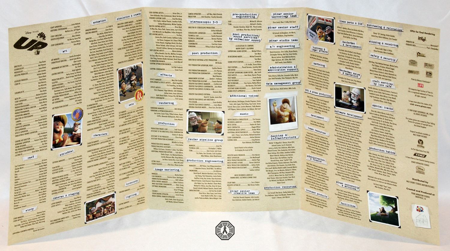 Pixar "Up" production promo. Lists of everyone involved creating the film are inside of this oversized glossy brochure.