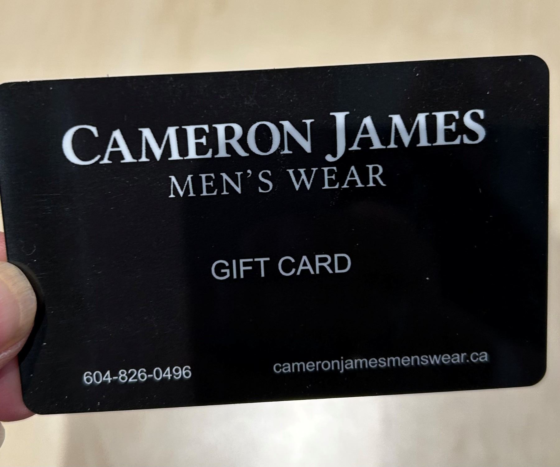 Two (2) x $25.00 Cameron James Men’s Clothing Gift Cards
