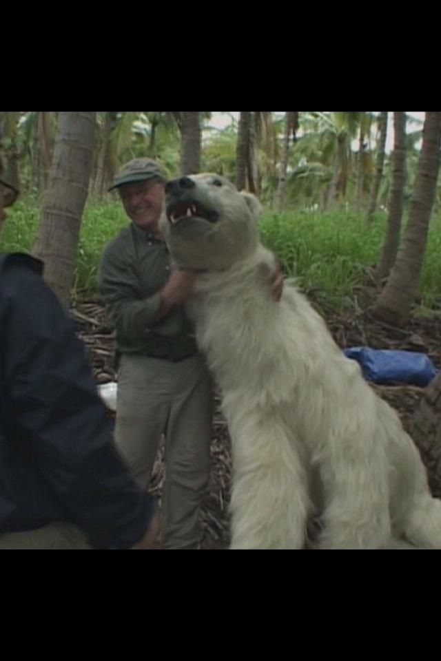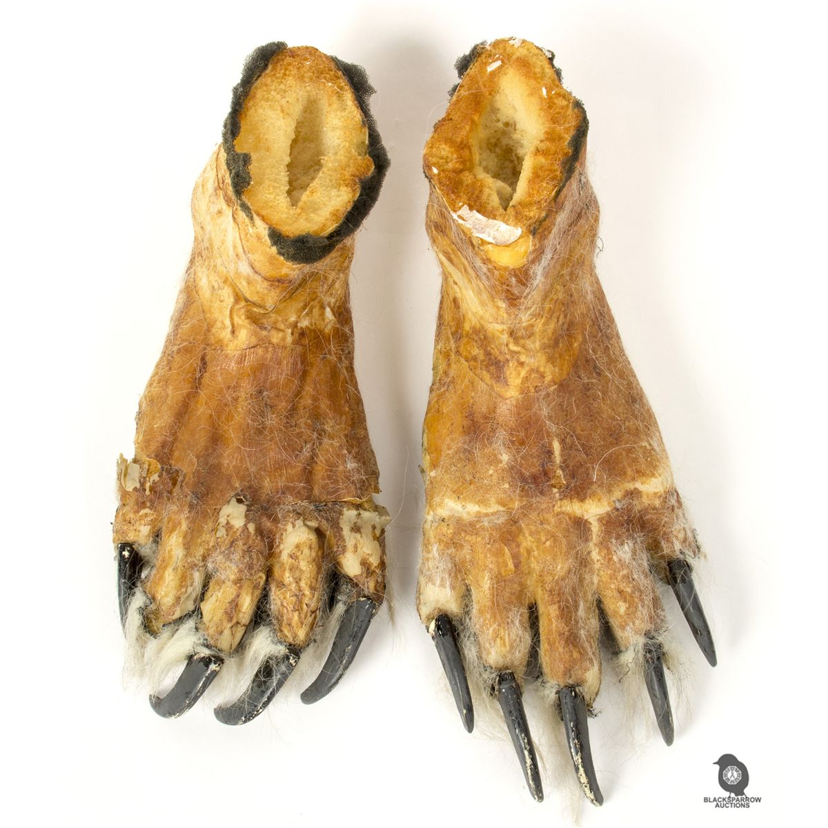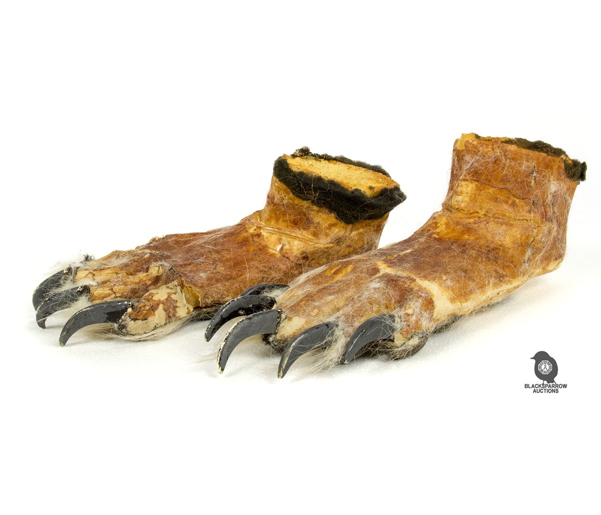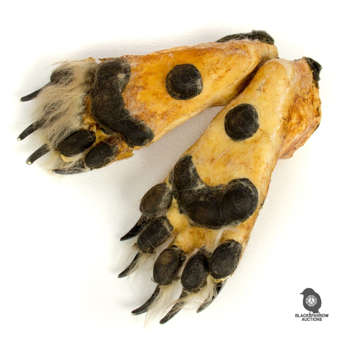 Prop polar bear head and pair of claws made of foam and faux hair, as seen in the cave scene with Locke in the Season 3 episode, "Further Instructions," as well as other episodes. Only two polar bear props were created for the series, one being an animatronics version. This set of head and claws were used in conjunction with a bodysuit worn by a production crew member. Includes a certificate of authenticity from Animal Makers. Some moderate wear from usage. Otherwise, in fine display condition. From the Collection of Ken McMeans. **5% of final bid price will be donated to American Cancer Society.**