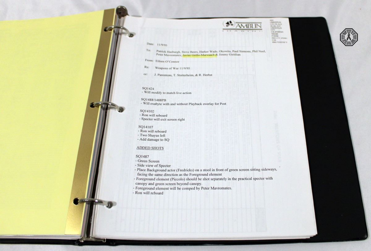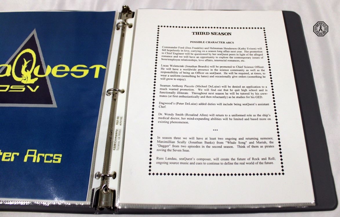 5) SeaQuest 2032 "Weapons of War" (the very last episode filmed) script in binder with call sheets, outline and more!