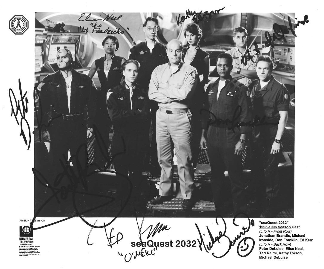 2) SeaQuest 2032 black and white photo signed by Jonathan Brandis, Michael DeLuise, Peter DeLuise, Kathy Evison, Don Franklin, Michael Ironside, Elise Neal and Ted Raimi!