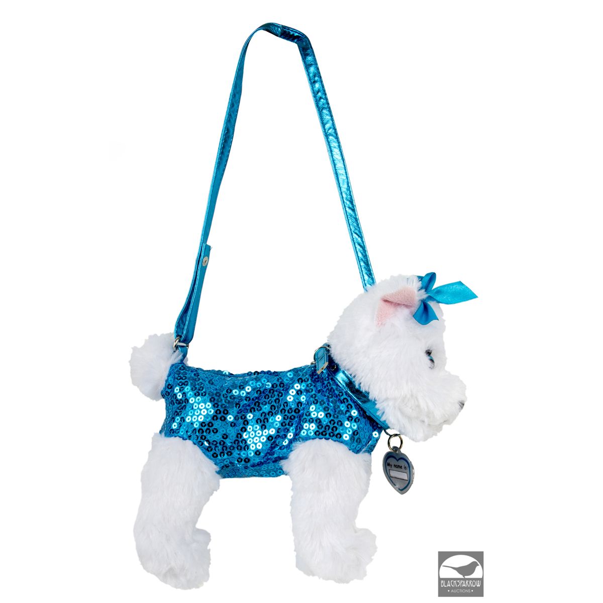 Four dog purses from Poochie & Co. used in the "Moon Quake Lake" premiere after party (Scene 86 according to the Assets Department's notes) in Annie. Some wear, but overall in very good condition with original retail tags.