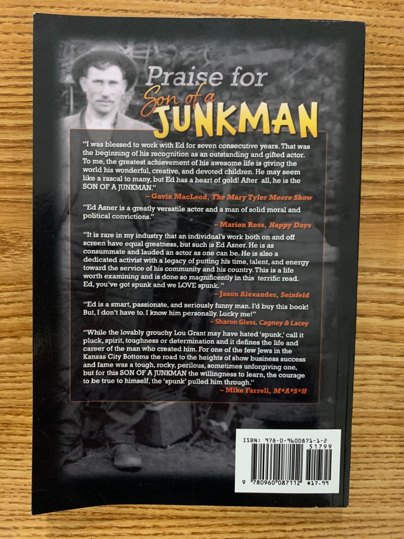 Emmy Award-winning actor, Ed Asner, recounts tales from his amazing life in this charming and hilarious memoir. From his colorful childhood as the son of a junkman growing up in the West Bottoms of Kansas City all the way through his spectacular acting career during the golden age of film and television, Ed recounts warm memories that are anything but ordinary. Son of a Junkman makes the reader feel as if they've pulled up a chair in Ed's home just in time to catch the loveable Hollywood grump tell a story or two. Foreword by Paul Rudd. Signed by Ed Asner.