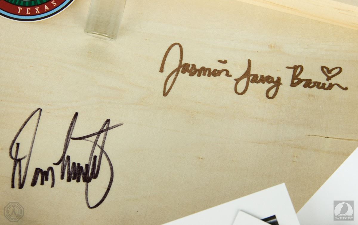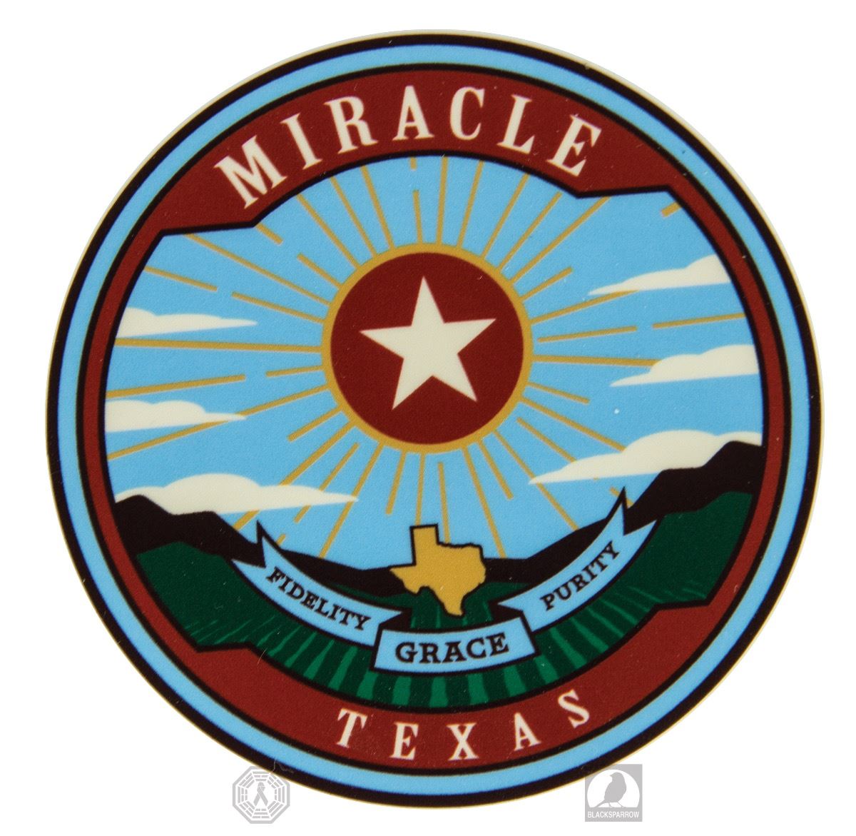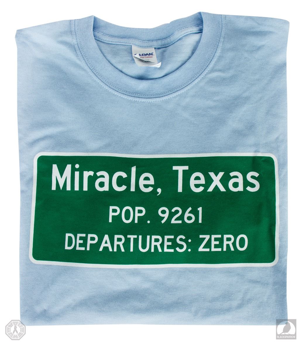 The Leftovers Season 2 Miracle, Texas press kit box, which Includes a light blue Miracle t-shirt (size Large), Miracle map, sticker, set of 4 postcards, and a vial of Jarden spring water. Signed on inside of top lid by Executive Producer/Showrunner Damon Lindelof and Jasmin Savoy Brown ("Evangeline Murphy"). Donated by Jo Garfein. In fine condition.