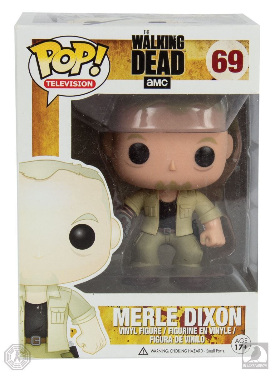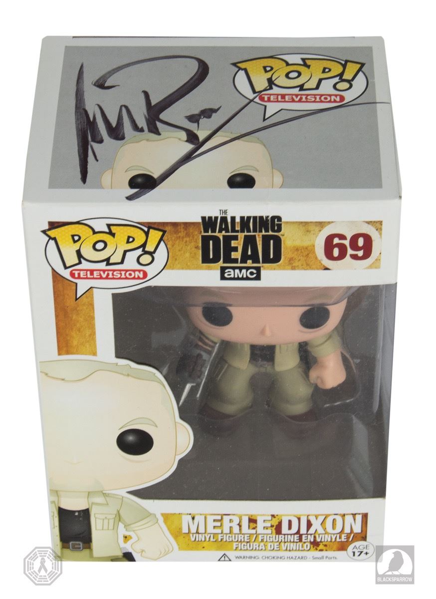 The Walking Dead Merle Funko Pop! vinyl figure #69. New in box. Signed on the top of the box by Michael Rooker ("Merle Dixon"). Donated by Jo Garfein.
