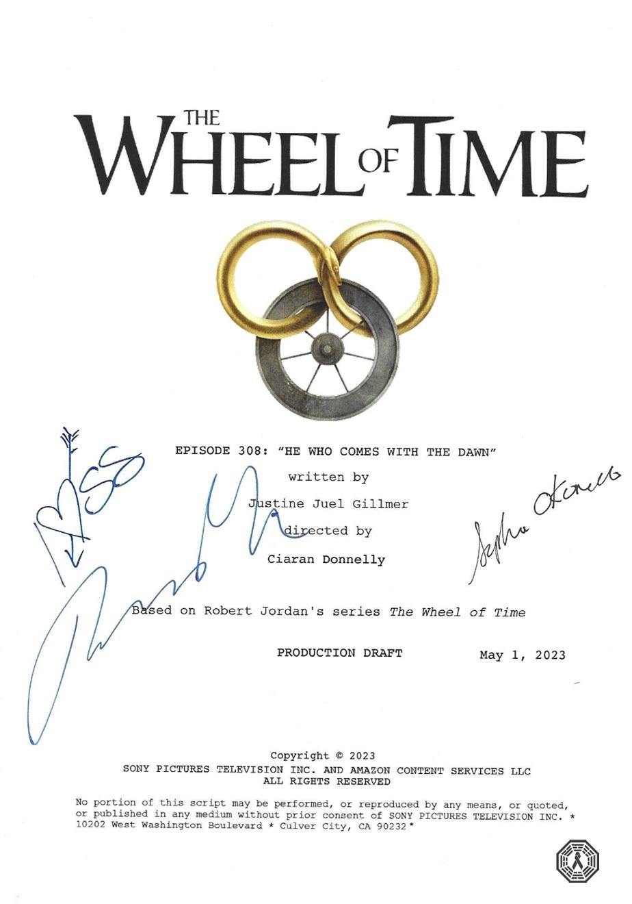 The Wheel of Time Episode 308 "He Who Comes With The Dawn" Production Draft script cover (only). May 1, 2023. Series Finale! Written by Justine Juel Gillmer. Directed by Ciaran Donnelly.