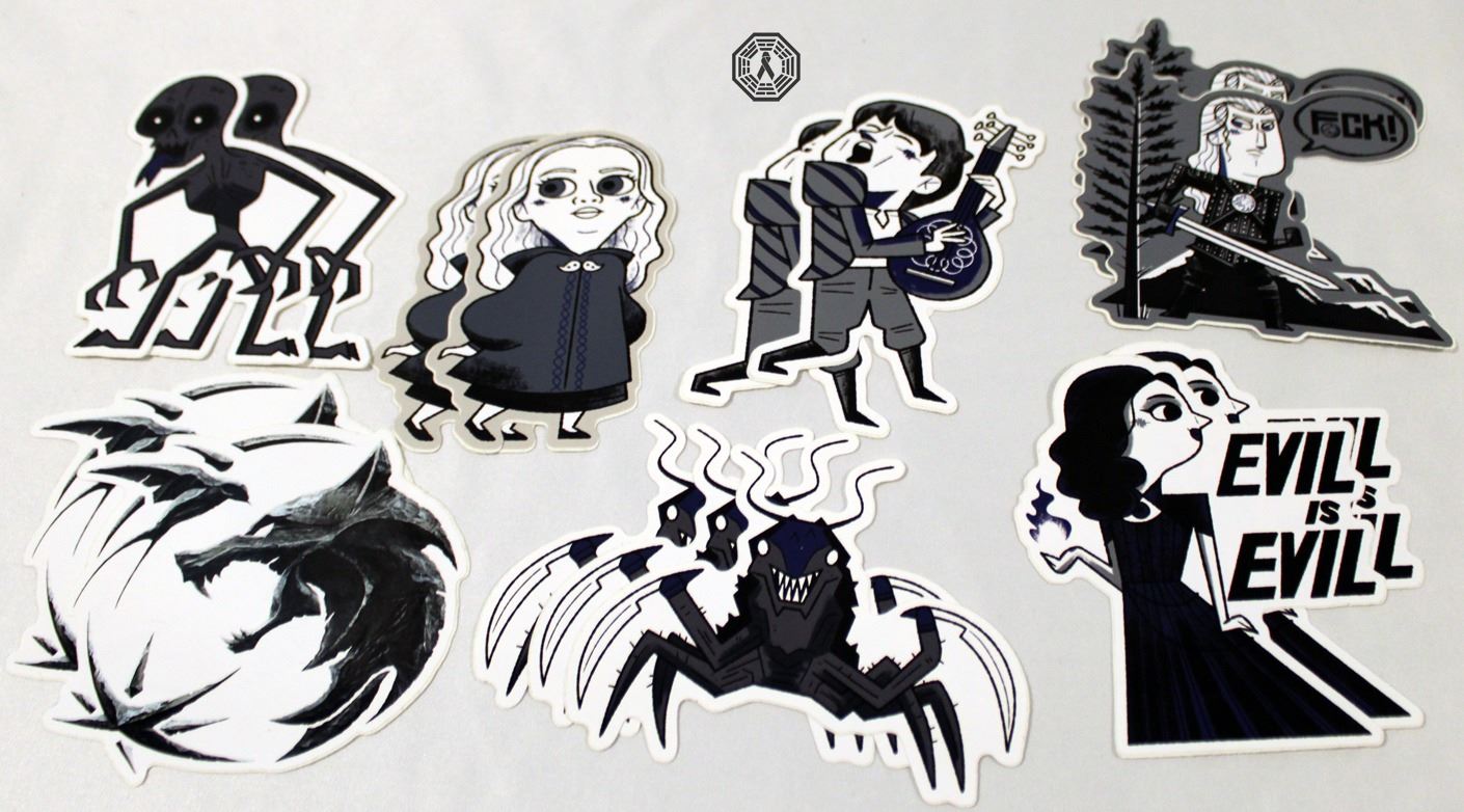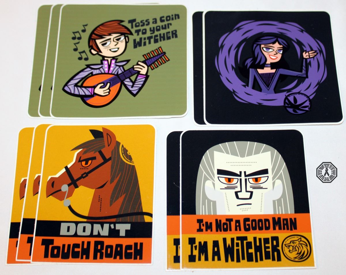 - 2 sheets of 4 WitcherCon stickers, signed on back side by Javi! New, in good condition.