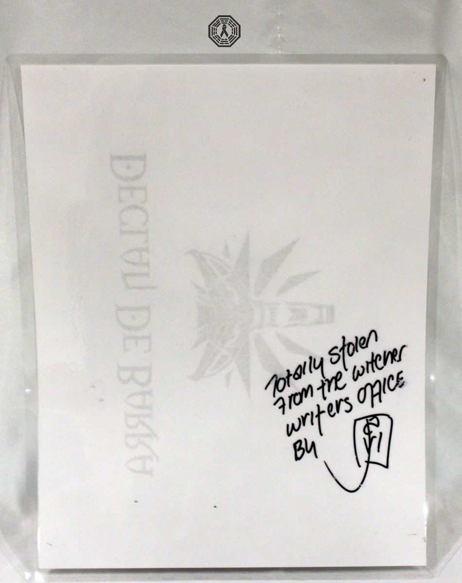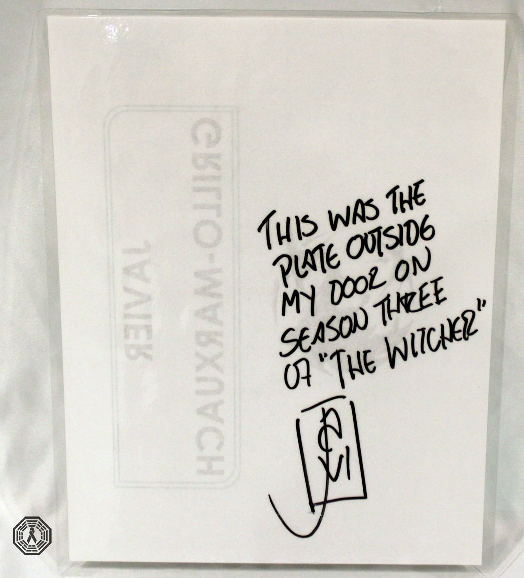 Donated by Executive Producer Javier Grillo-Marxuach, who signed the back of his name plate and added notes on the backs of the other four!